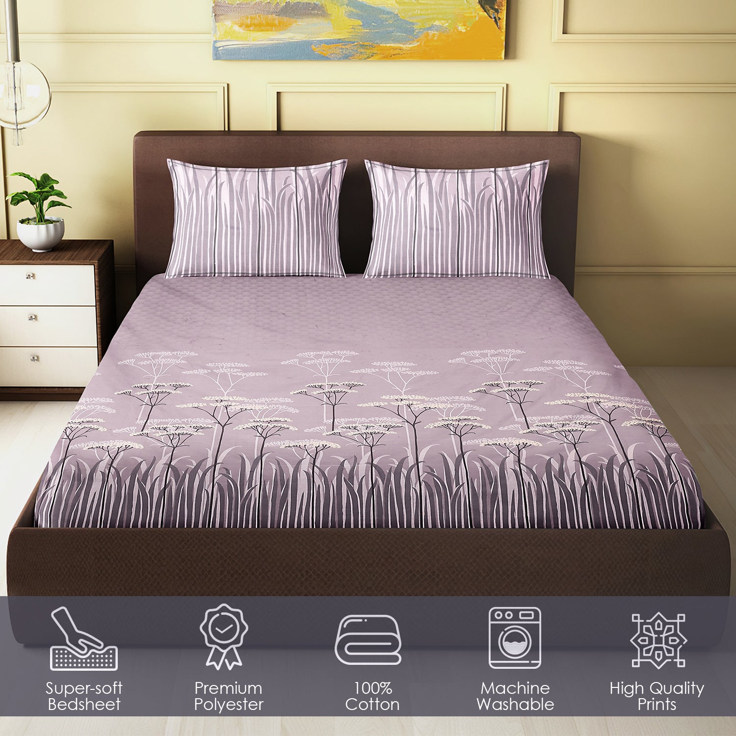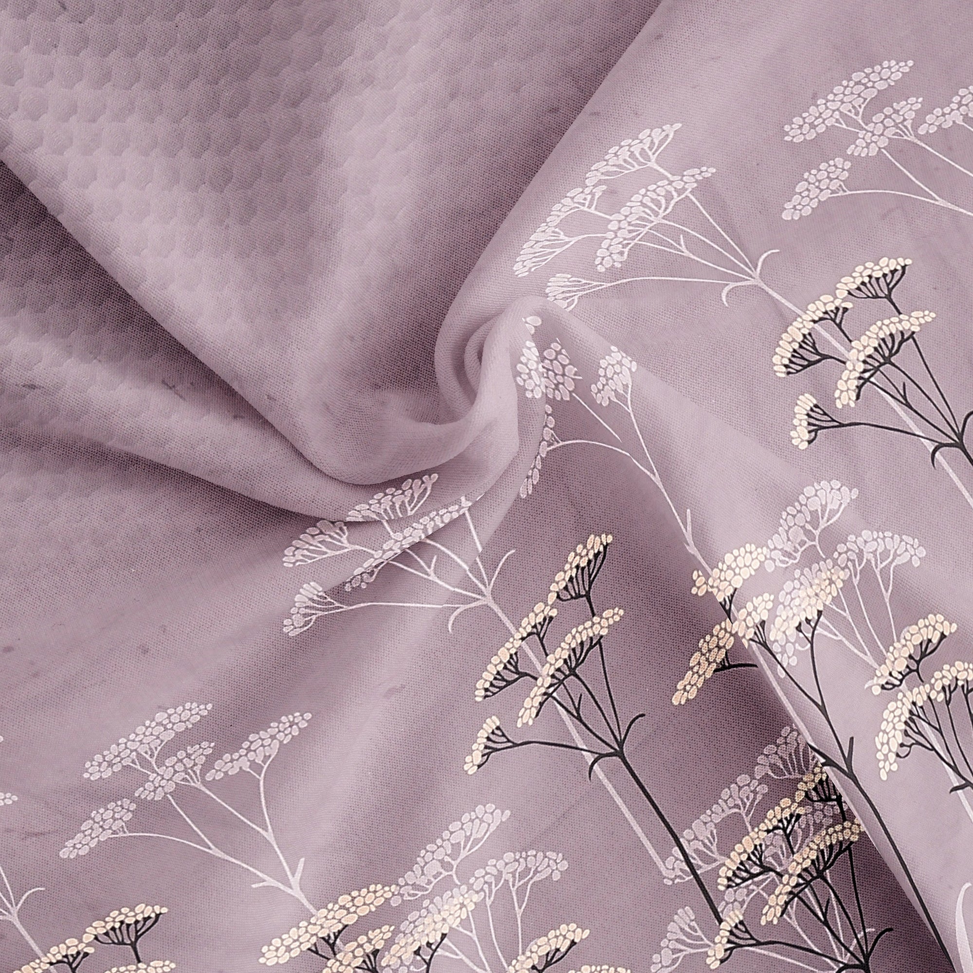 Bring home the calm and elegance of nature with our Lavender Meadow Bedsheet. The soft lavender base, adorned with graceful grass patterns and delicate white floral silhouettes, creates a peaceful and contemporary charm. Its minimal yet artistic design makes it a perfect fit for both modern and classic interiors.
